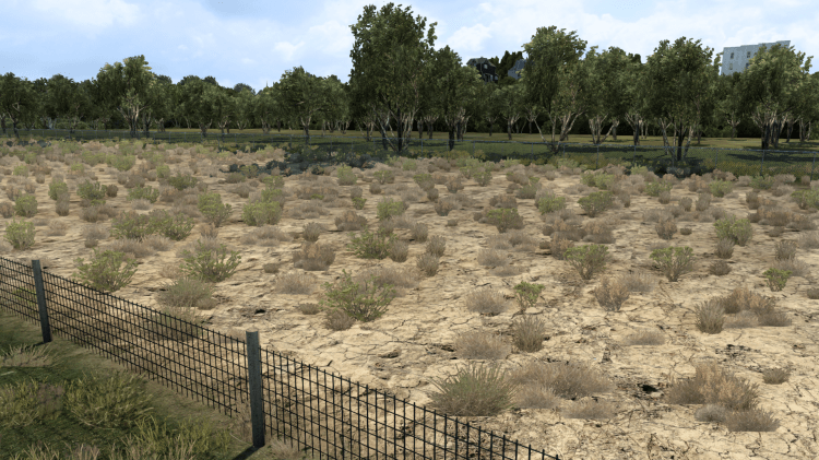 Vegetación mejorada: árboles, matorrales, campos y flora adaptada al paisaje americano con mayor densidad y color natural.